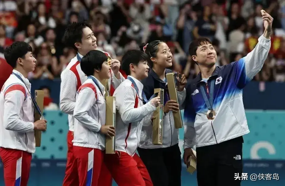 乒乓球混双颁奖仪式上,孙颖莎、王楚钦邀请分获亚军、季军的朝鲜、韩国组合一同自拍合影,各国媒体竞相播放这一镜头,成为本届奥运会令人欣悦的经典一幕。