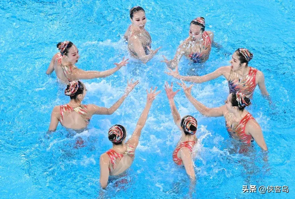 中国花样游泳队夺金后,来到位于巴黎特罗卡德罗广场的冠军公园,与观众分享荣耀。欢呼声中,花游姑娘再次摆出了“埃菲尔铁塔”的开场造型,与对面的“真铁塔”呼应。这个向东道主致敬的动作设计,让法国观众兴奋不已。