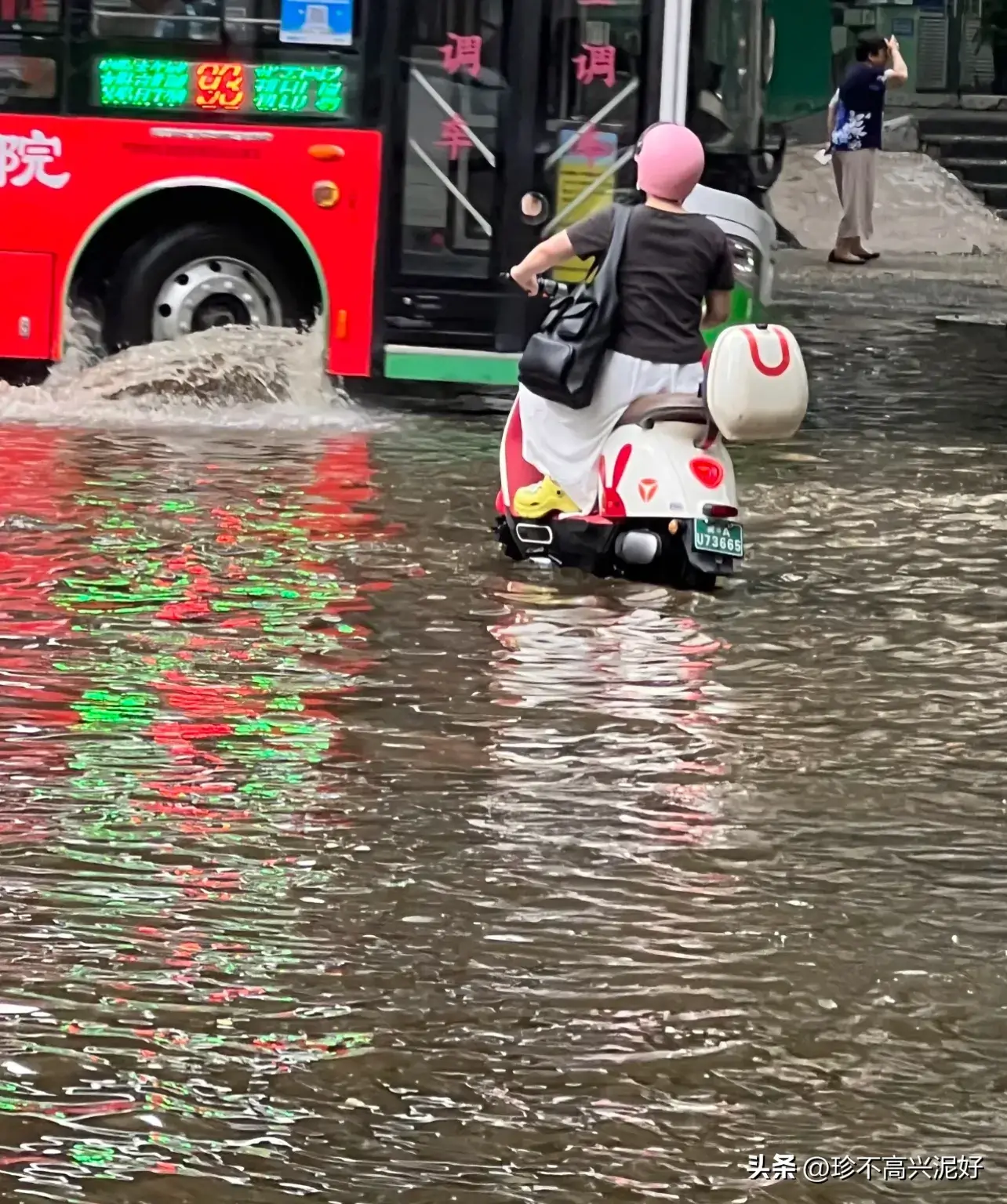 雨过天晴后的国际庄!工农路师范街,像在开船,不过等大家下班时候,积水差不多应该能排完。