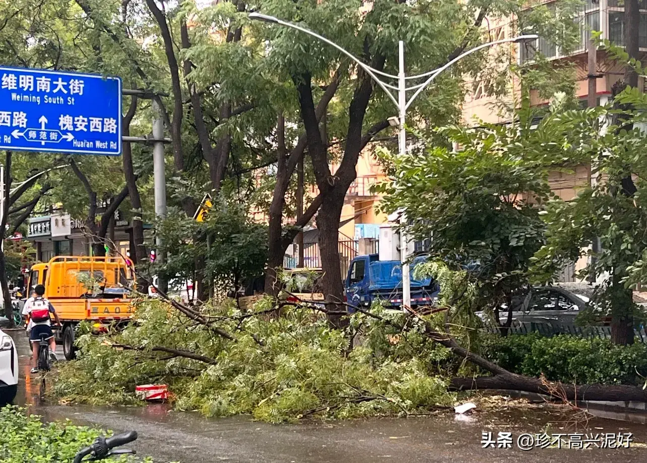 暴雨加大风来得太猛烈了,路上不少树都被折了!还好没有伤到路过的行人!