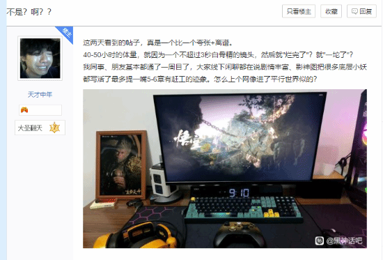 针对这些评论,另一部分玩家发帖表示难以理解:“40-50小时的体量,因为一个不到3秒的白骨精镜头就‘烂完了’?怎么上个网就像进了平行世界一样?”
