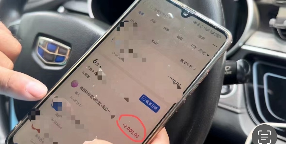 就这样,他从6月30日下午载上乘客,经过成都、遂宁、广安、宜昌、荆门、武汉、驻马店、漯河、郑州、邯郸、石家庄、保定等城市,最后于7月2日下午抵达北京,单边总计跑了2300多公里,近40小时,来回过路费花了2000多元。由于是电车,他在路上充了十多次电,充电费用将近千元。记者看到,在整个路程中,乘客分微信和支付宝转账,总计支付车费11000元左右。