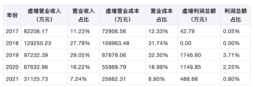 2017年、2019年至2021年,易事特涉嫌与杭州和晨科技有限公司等客户开展没有业务实质的虚假业务。