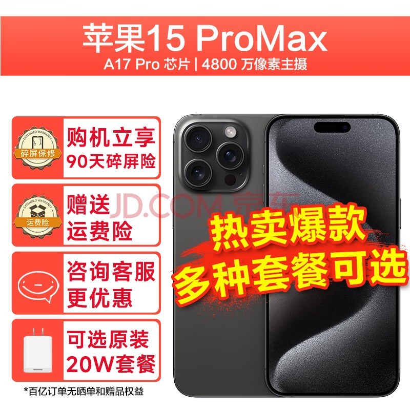 Apple苹果15promax (A3108) iphone15promax 手机apple 全网通5G手机 256GB黑色钛金属 官方标配