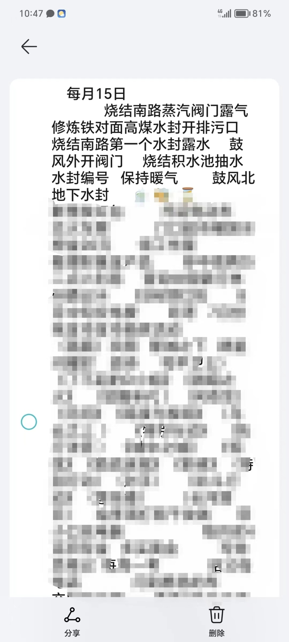 李先生的荣耀80手机已经用了两年多,备忘录里记录2000多字的内容,包含大量公司点检信息,如设备的型号、更换的备件规格、型号,以及个人的报销款项、单据、密码等。