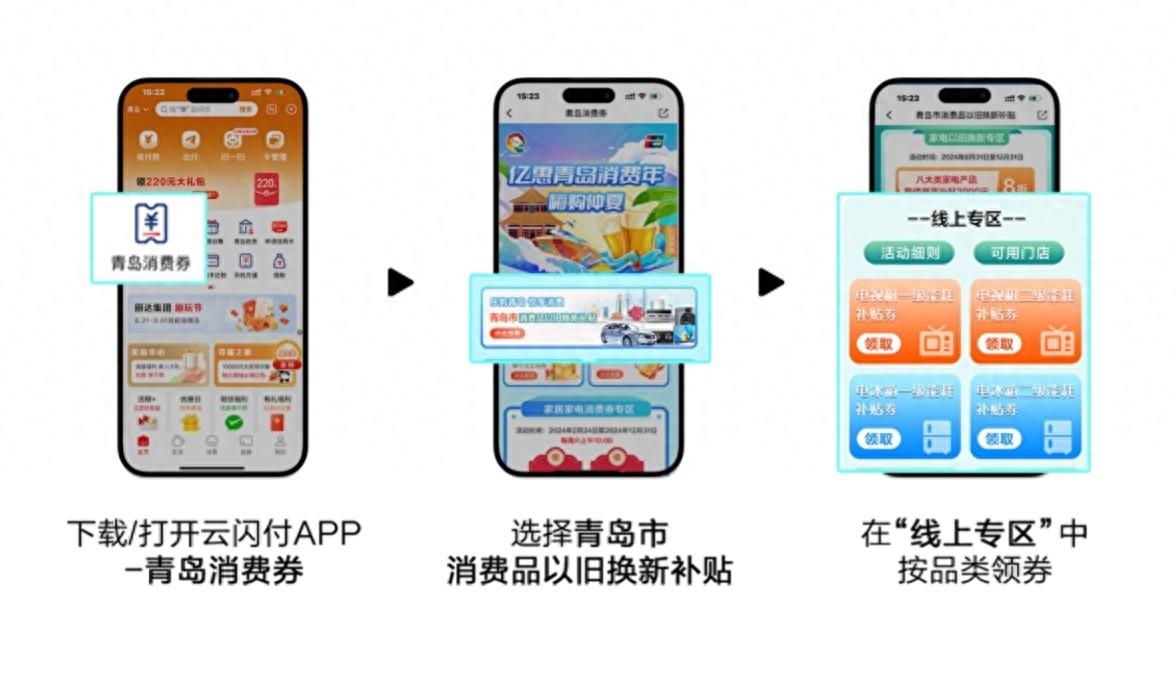 第一步,领补贴。在京东、淘宝APP搜索“青岛以旧换新”,点击以旧换新专区即可跳转到云闪付APP领取相应的补贴,单件产品至高补贴2000元,每人至高可省16000元。不仅如此,海信在政府单台至高补贴2000元的基础上,推出了单台至高再补2000元的政策,也就是说用购买普通款产品的价格就能买到旗舰款的产品,同等价格轻松升级品质体验。除了线上电商渠道,消费者还可在利群、利客来、苏宁易购、京东mall等实体家电零售商家购买。