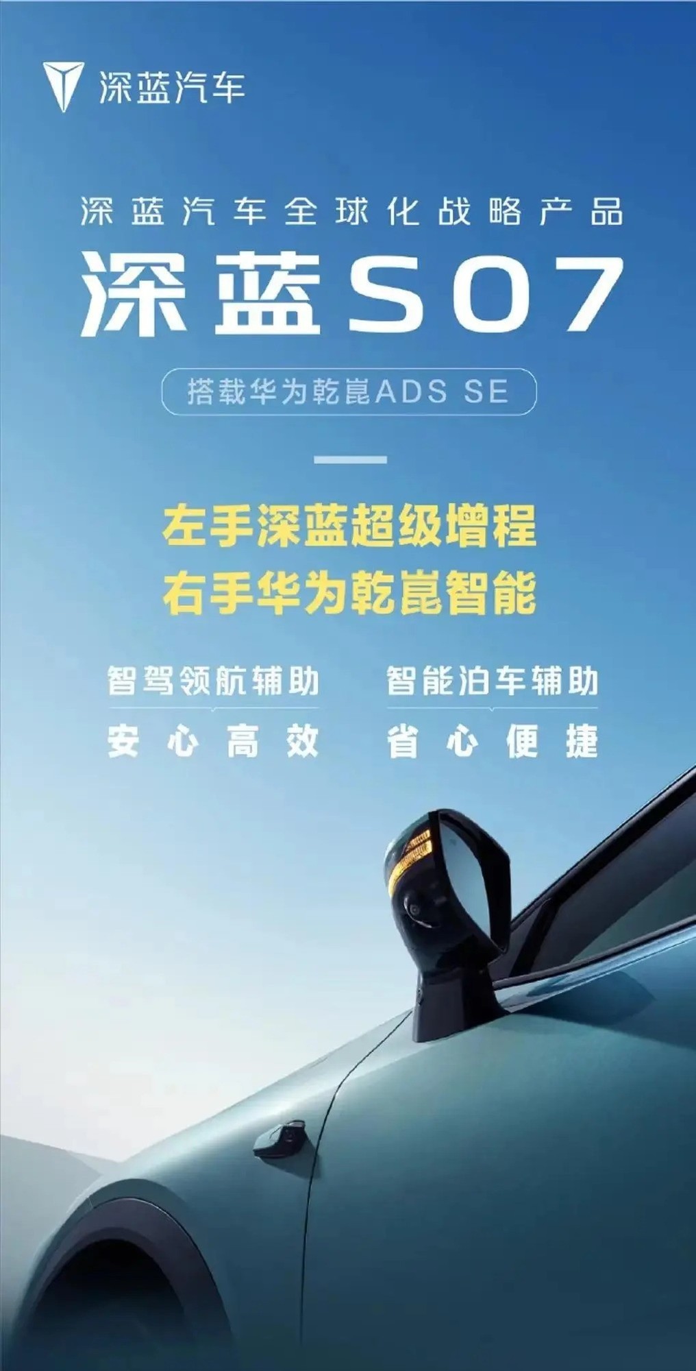 7月8日,深蓝汽车官方宣布其新款车型S07将搭载华为乾崑ADS SE智驾系统。据了解,这款新车是深蓝S7的改款车型,其动力系统提供了增程版和纯电版两种模式选择。作为深蓝体系首搭华为乾崑智驾的车型,深蓝S07系统将支持NCA智能领航辅助以及智能泊车辅助。
