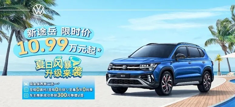 上汽大众近日推出了一款紧凑型SUV途岳的限时优惠活动,该车售价为10.99万元起(仅支持按揭贷款购车),优惠幅度高达7.00万元。途岳共有5款车型在售,官方指导价区间为15.86-21.66万元,按照限时售价计算,实际优惠达到了3.5万元左右。