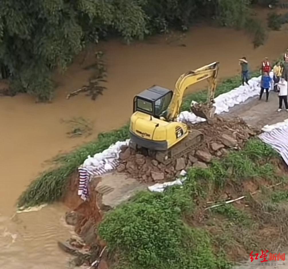 上述负责人介绍,堤坝缺口长度约10米,洪水倒灌进黄田村、上岗村、下岗村范围,致几个村庄农田和部分低洼房屋受淹。当晚,镇村干部在洪沟处组织沙袋防汛墙,现场参与超过200人。目前,该镇针对拦洪沟决口等情况,已调动多台挖掘机、铲车、大货车进行沙石填埋等抢险救灾工作,拦洪沟堤坝正在加紧封堵修复。