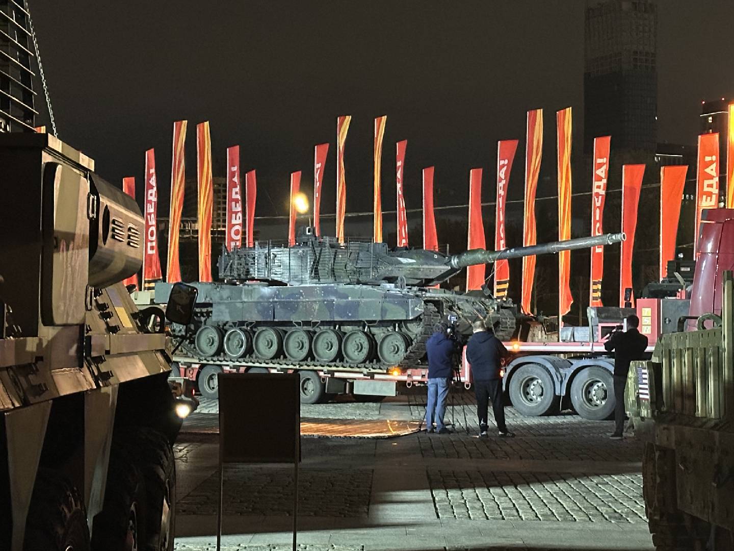 俄罗斯国防部此前在一份声明中表示,一场用于展示俄军在特别军事行动去缴获装备的胜利展览将于5月1日在博克隆山胜利公园开幕,并将持续到初夏。展览期间,波博克隆纳亚山胜利公园将展示美国、英国、法国、土耳其、奥地利等国家为乌克兰提供的军事装备样品,特别是“豹”式坦克和“黄鼠狼”步兵战车。