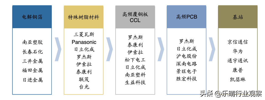 随着通信技术从4G向5G的过渡,宏基站与微基站的天线/射频模块、光通信模块以及新型封装工艺等都将广泛采用高频高速材料。