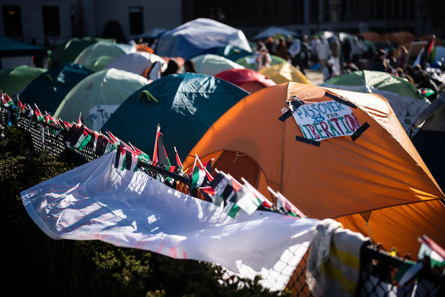 纽约哥伦比亚大学草坪上抗议者搭建的帐篷。图自《华盛顿邮报》