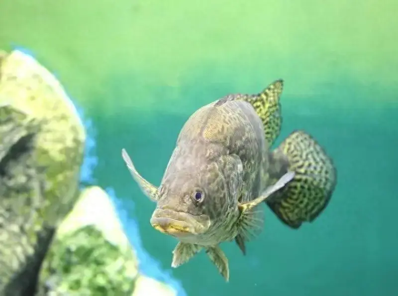 鳜鱼的体型独特,鱼头部位尖而嘴突出,鱼嘴上下口部长满了细刺,眼睛大,背部隆起长有数根尖刺,腹部圆润,体表颜色通常呈青黄色或橄褐色。