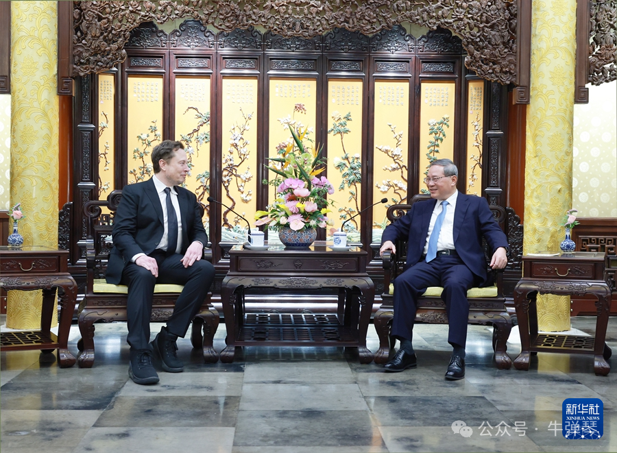 看新闻联播,4月28日下午,在钓鱼台国宾馆,总理会见了马斯克。