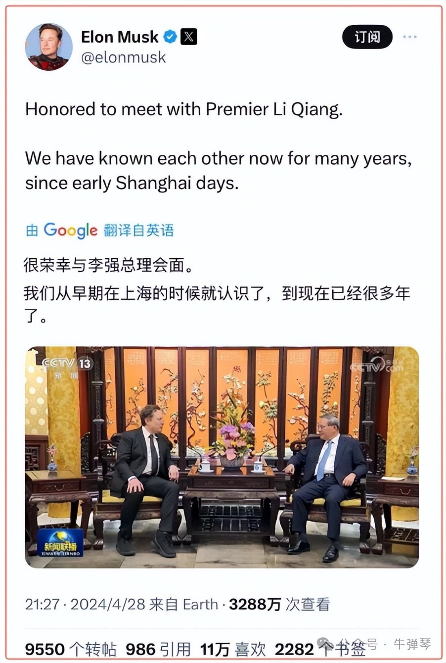 还担任X(推特)老板的马斯克,很快就在北京发推感叹:很荣幸与李强总理见面。我们在上海的时候就认识了,到现在已经很多年了。