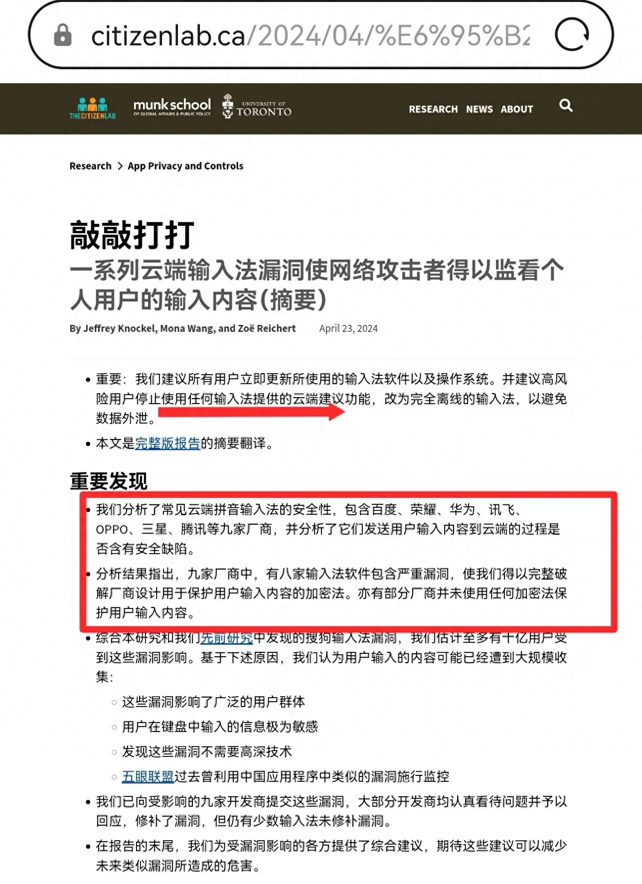 根据加拿大公民实验室的一份手机云端输入法漏洞安全调查包含显示: