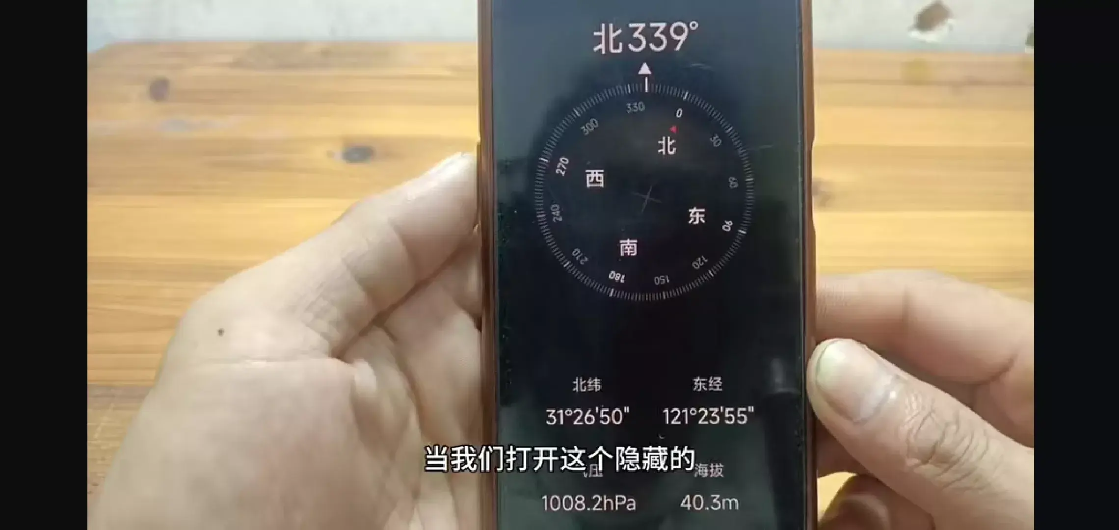 当我们打开这个隐藏的指南针功能以后,我们就能够知道现在的位置处于什么北纬经纬,还能看到我们现在的大气压是1008,现在的海拔高度是40.3米,这个这个方法是不是特别的实用呢?(如上图所示)