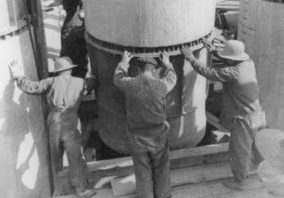 武汉长江大桥修建期间,建设者进行柱桩联结的作业。 中铁大桥局集团有限公司供图