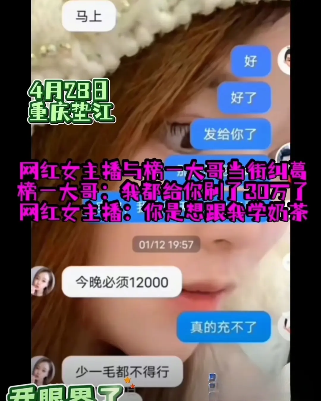 看了看网络流传的女主播和榜一大哥的聊天记录。