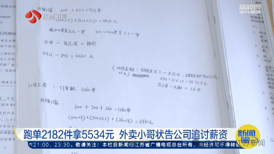 南京市中级人民法院民五庭法官刘懿介绍,小孙8月份送餐1260件,薪酬应该是6900多元,但是实际只发放4000多元。7月份提成数量应该是4900多元,但实际只发放800多元,“每一单可以说,都是他们自己辛苦的血汗钱,被扣罚之后外卖小哥就非常不服。”