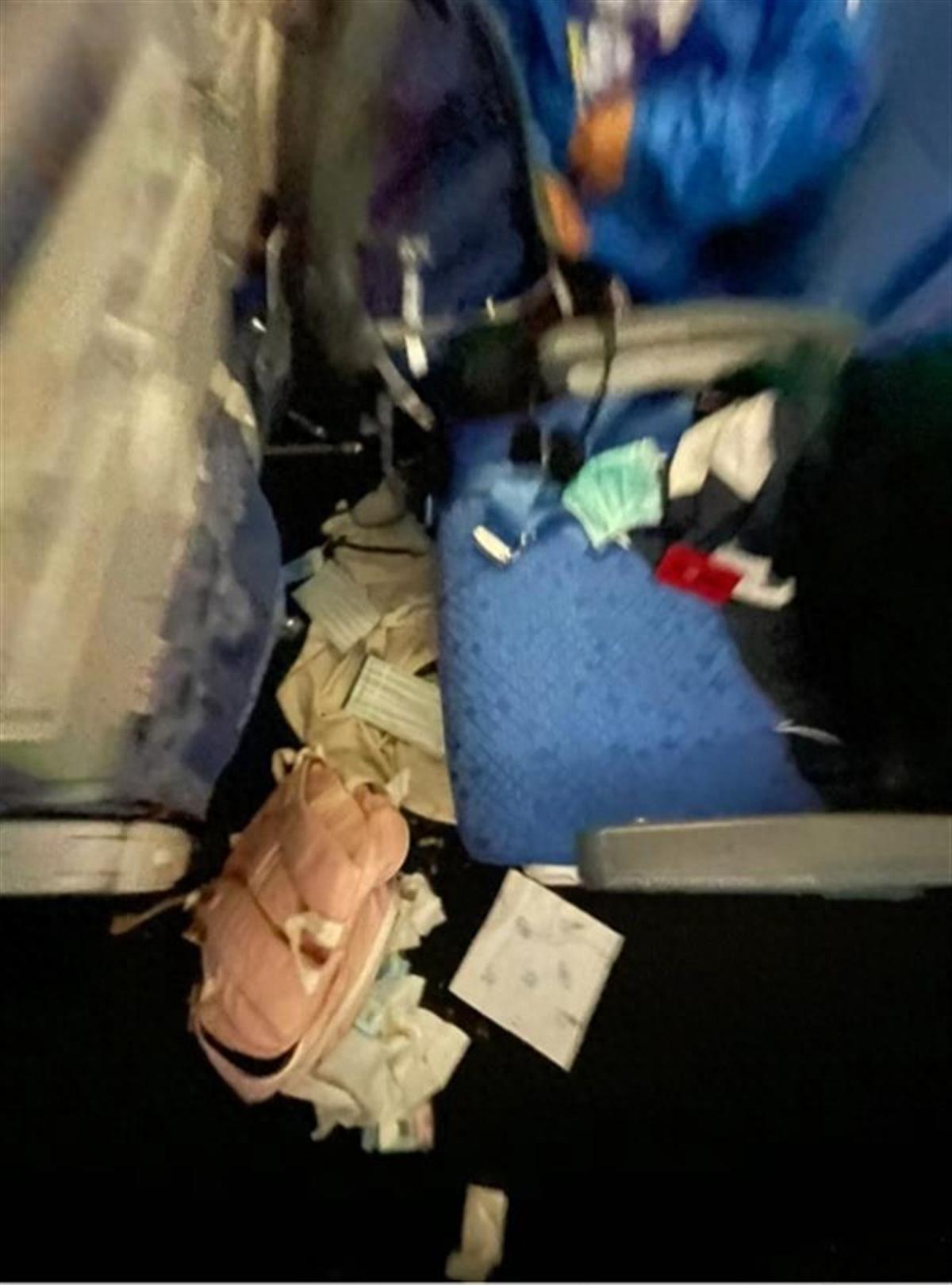飞机上乘客物品撒了一地 (网络截图)