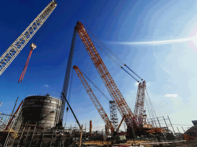 当时沙特有一项工程,需要吊装一台重1700吨、高92米的洗涤塔。