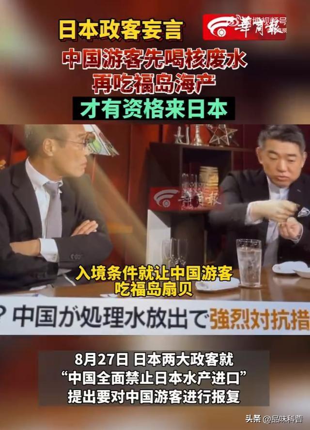 随着日本核污水的排放,日本对中国的抗议声浪十分鄙夷,甚至有政客妄言:“中国游客来日本的入境条件就是先喝核废水,再吃福岛海产。”