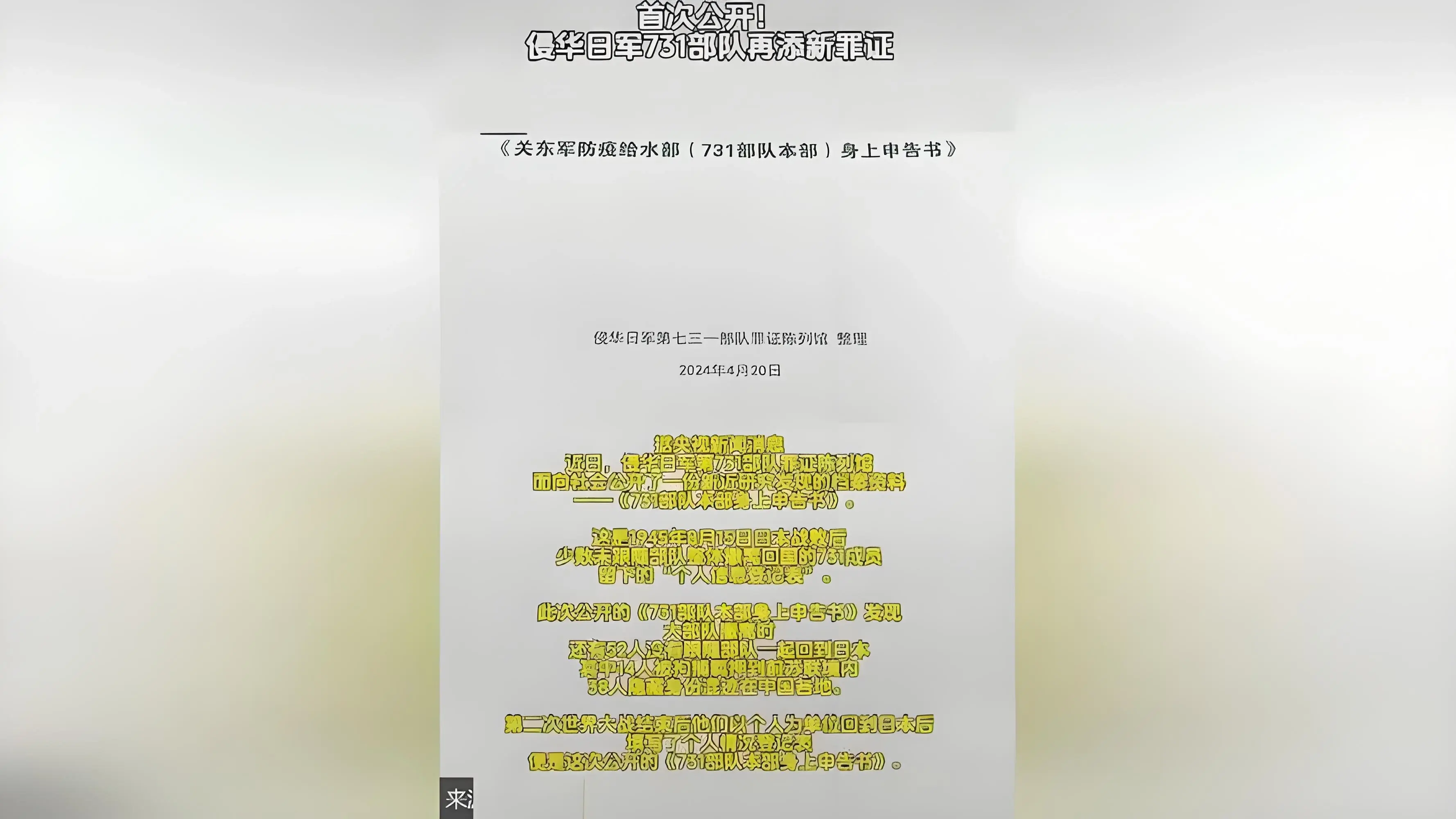 近日,侵华日军第731部队罪证陈列馆公开了一份《731部队本部身上申告书》,这是战后少数未整体撤离成员留下的“登记表”。