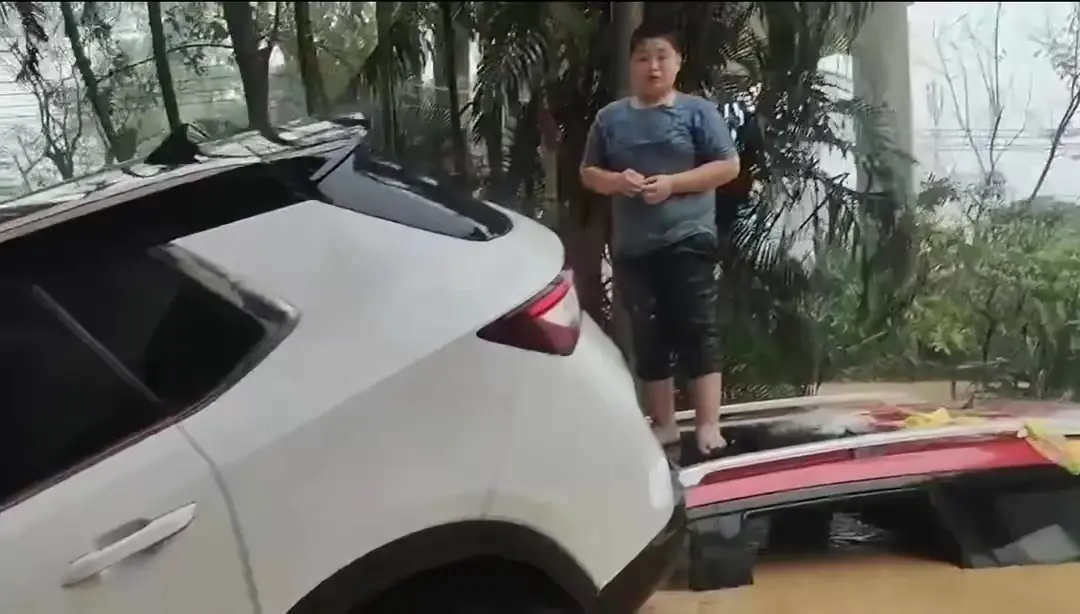 一、中山暴雨 紧急救援!14岁少年被困车顶,全身湿透一直在哭泣