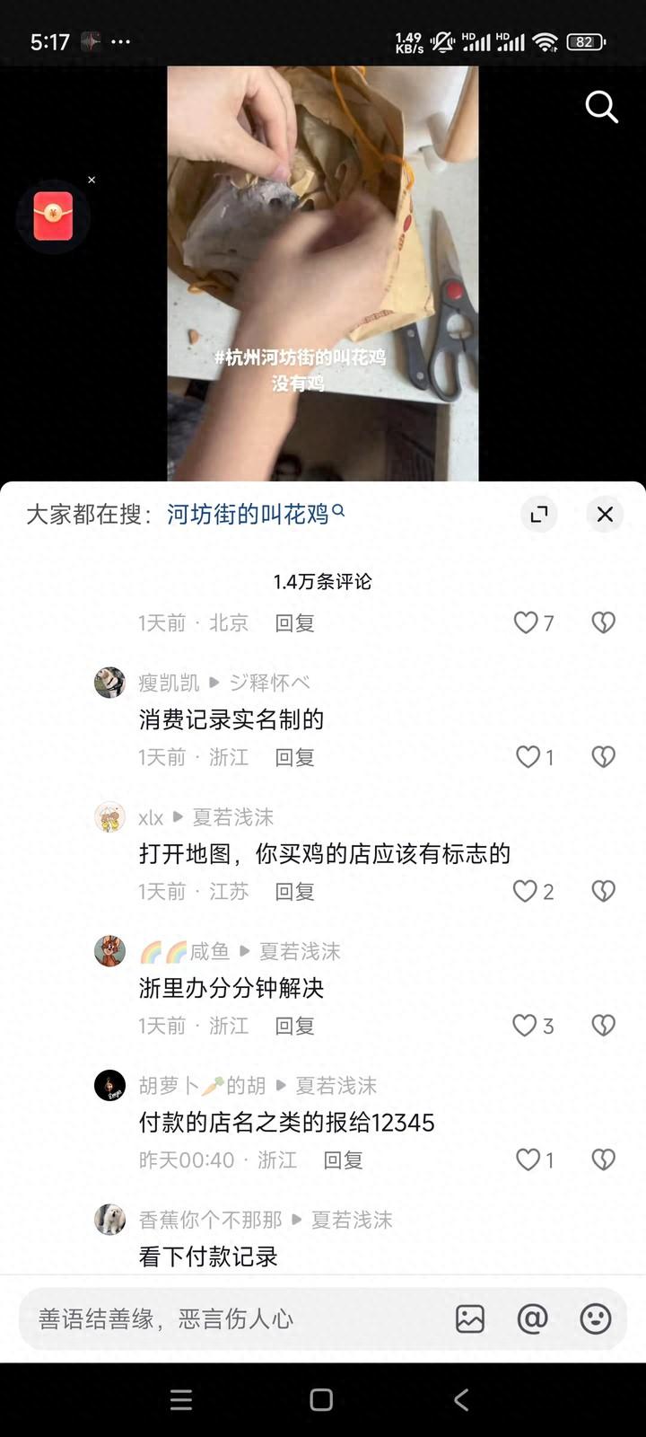 但是,一场“叫花鸡风波”却让去杭州河坊街旅游的博主“夏若浅沫”感到不顺心。