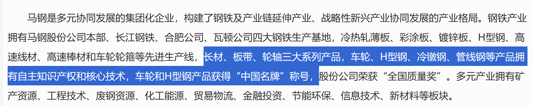 马钢是一家碳钢企业,曾有“江南一枝花”的美誉,按照其官网介绍,主打产品长材、板带和轮轴。2019年进入巨无霸宝武集团,最近头条有不少舆论认为马钢进入宝武出现了亏损,是宝武拖累了其发展。