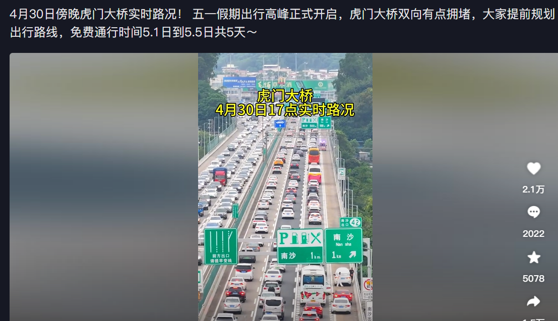 假期人们出行集中,叠加高速公路免费,假期出行和返程高峰均易发生严重拥堵。假期开始前的4月30日,各城市出城主要道路就开始发生交通拥堵,假期最后一天返程高峰,均会出现大面积拥堵。