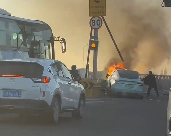 今日有不少博主放出了一段电动车事故后起火的视频,从拍摄环境看,事故发生在上海,一辆沪A牌照的新特斯拉Model 3不知为何撞到了路中的护栏,车头处冒出了熊熊火焰,情况万分危急。