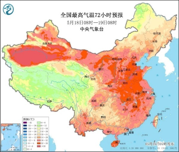 详情:据中国天气网消息,5月17日至19日,南疆盆地、华北平原、黄淮等地的部分地区将有35℃以上高温,局地气温甚至可超37℃。省会级城市中,西安、郑州、济南都有望迎来今年首个高温天气,普遍早于常年,其中西安、郑州将遭遇高温“两连击”,公众外出还需注意防暑降温。而南方的暖热程度远远不及北方,由于云量较多,多地还有雨水出没,气温普遍会低于常年同期,江南大部最高气温普遍在30℃左右,南北气温倒挂。(来源:中央气象台、@中国天气网)