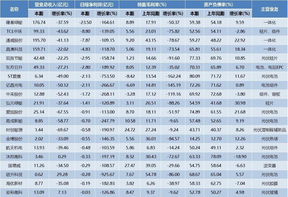 受产业链各环节产品价格大幅回落影响,叠加一季度是光伏行业的传统淡季,多数光伏企业业绩承压。