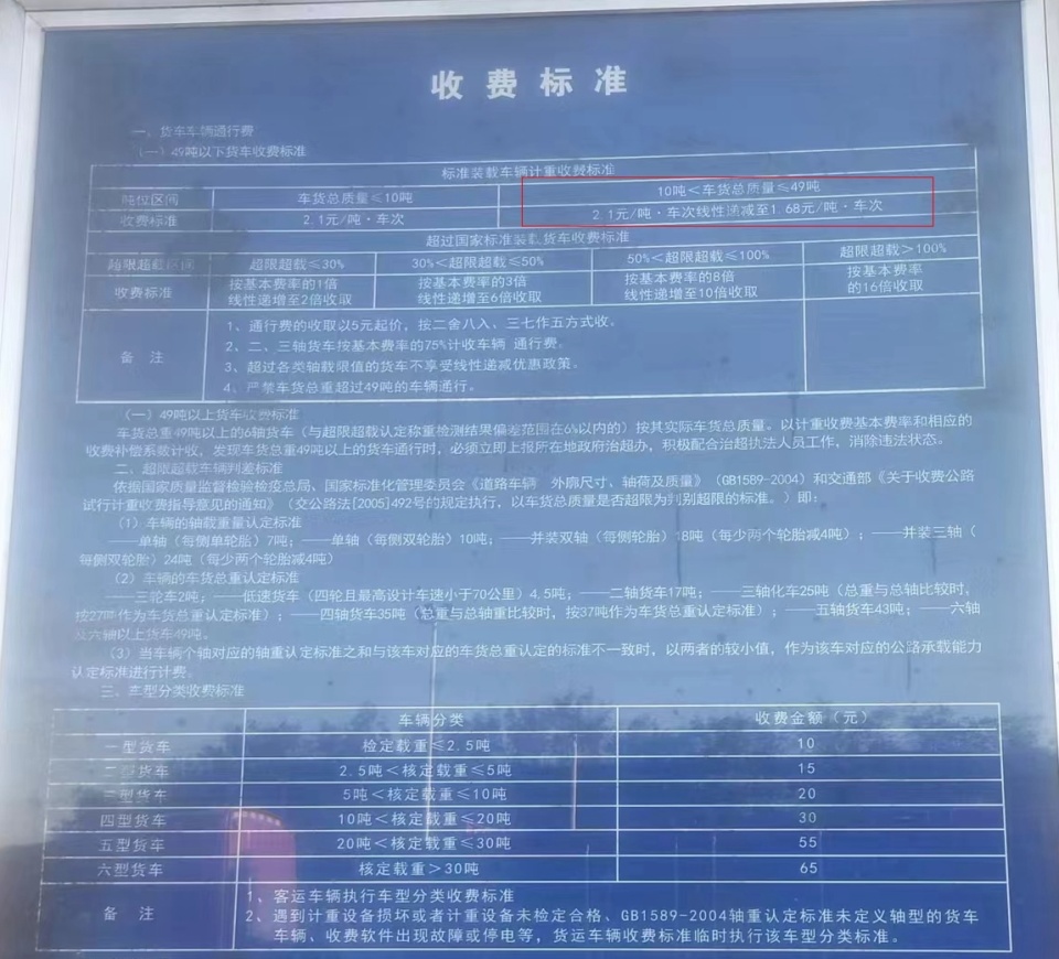 货车计重收费标准显示没有50元的收费金额。 受访者供图