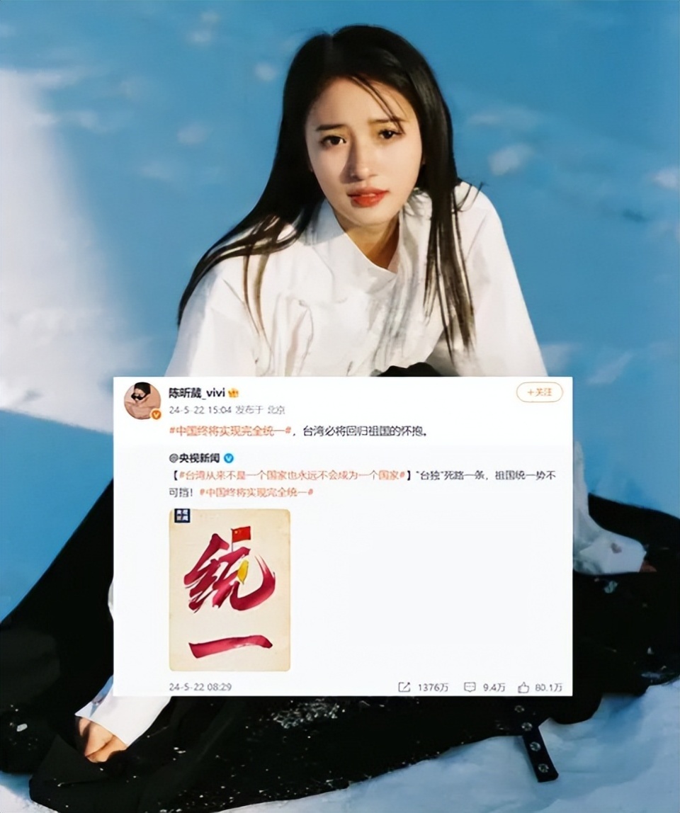 在最早一批转发支持统一的艺人中,有一大半都是刚入行的新人,他们有的是靠参加101选秀综艺出道,有的是靠大IP《流星花园》及热门短剧《我在80年代当后妈》出名。虽然人糊但是立场声明毫不含糊,比如王承渲、赖冠霖、官鸿、陈昕葳、苏袀禾等,都旗帜鲜明的表示:台湾属于中国。