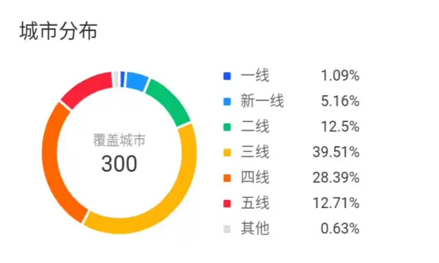 据窄门数据:7000多家门店中,覆盖300个城市,其中一线占比1.09%、新一线占比5.16%、二线占比12.5%、三线占比39.51%,北上广深四个城市仅有31家。而这31家中,也多集中在顺义、昌平、平谷、金山等非市中心区域。