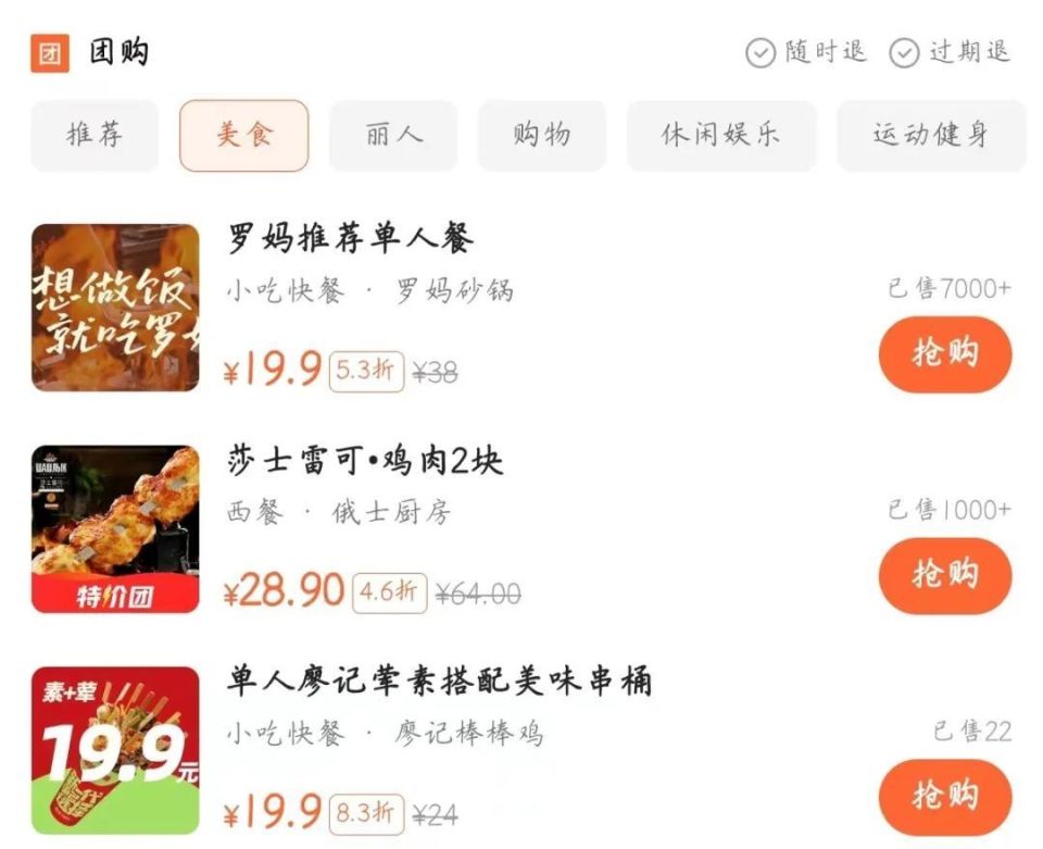 以北京朝阳大悦城为例,红餐网在大众点评搜团购套餐发现,商场内几乎所有的餐厅都提供折扣套餐,像罗马砂锅、廖记棒棒鸡等快餐店推出了19.9元的单人餐,部分日料店的折扣甚至低至2-3折。