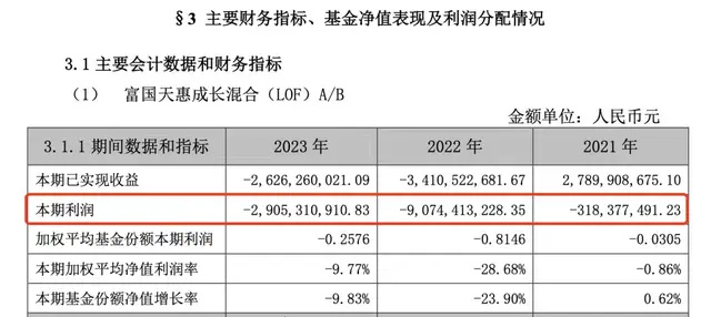 但最近几年,朱少醒疲态尽显。富国天惠成长A/B在2021年亏损3.18亿元,2022年巨亏90.74亿元,2023年再度亏损29.05亿,三年合计亏损约123亿。