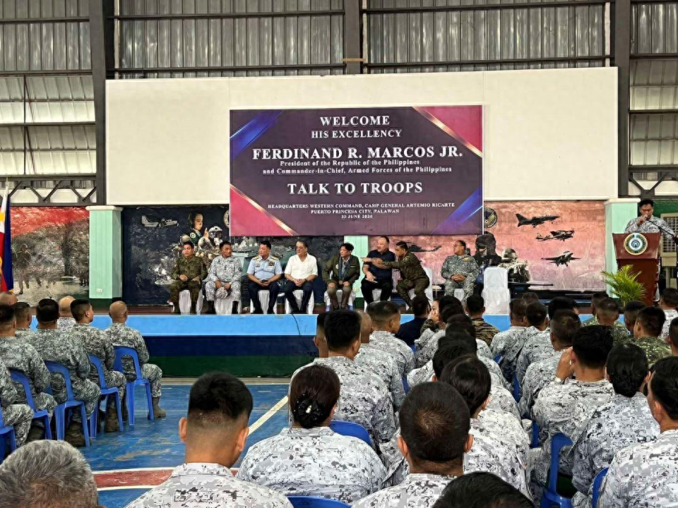 当地时间23日,菲律宾总统马科斯对军方发表讲话 图源:菲律宾媒体报道配图