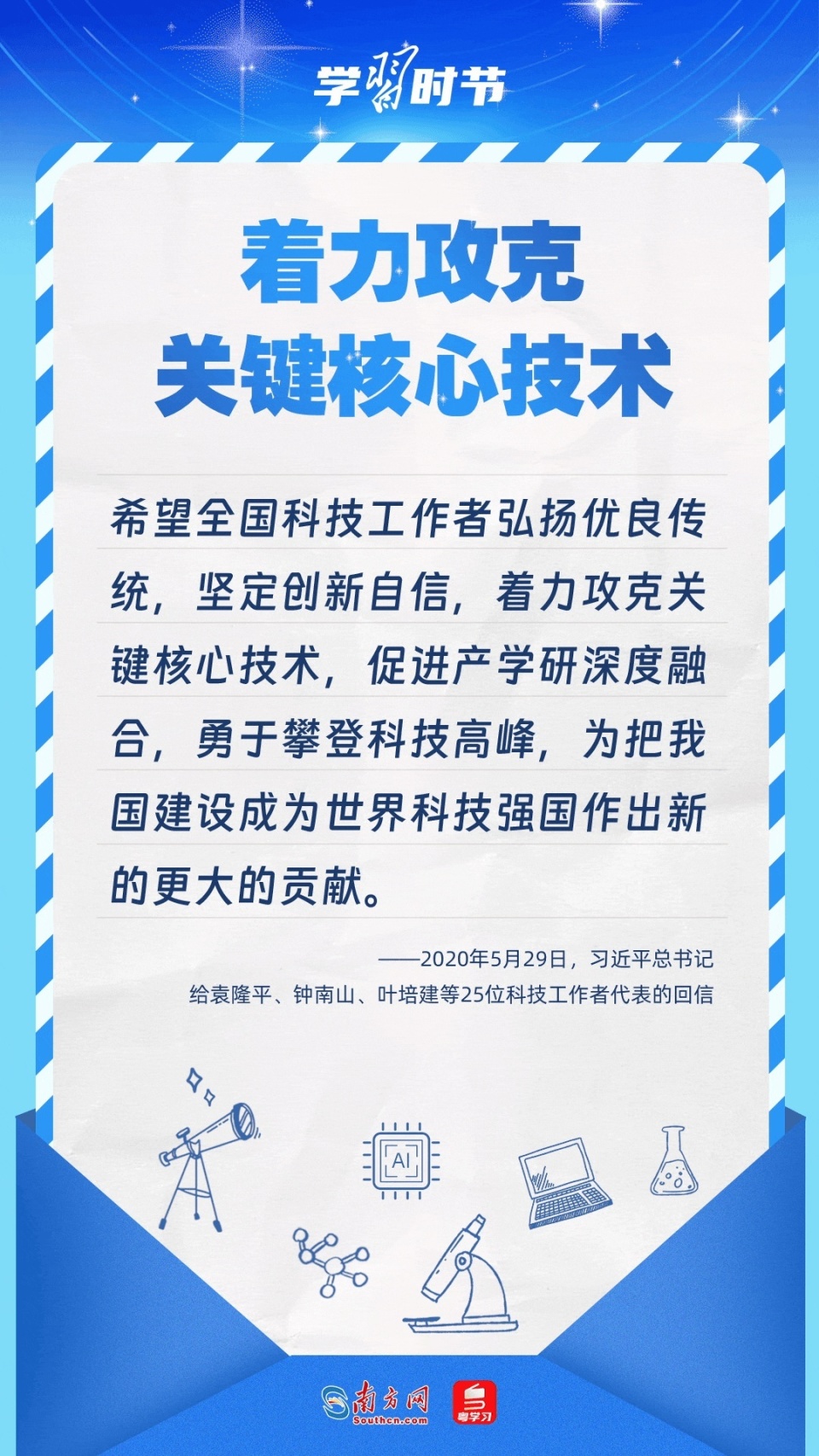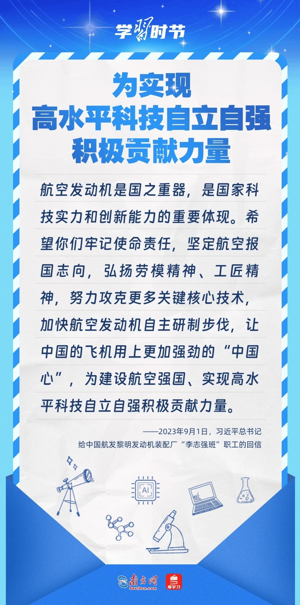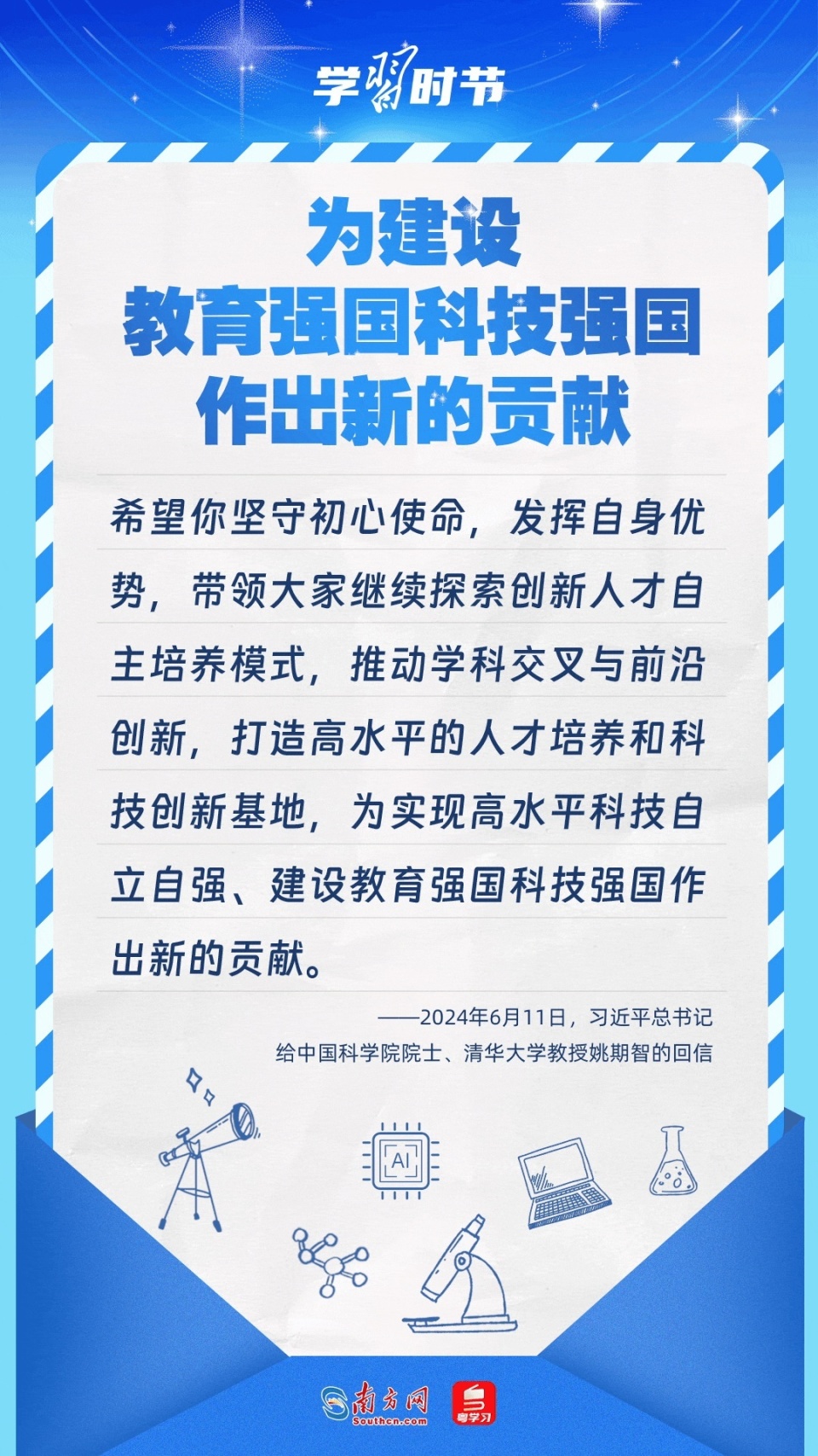 转载:https://new.qq.com/rain/a/20240623A04ZYF00 2024-06-23 16:24·人民网·发布于北京 科技兴则民族兴,科技强则国家强。党的十八大以来,习近平总书记高度重视科技自立自强,多次作出重要论述,勉励广大科学家、科技工作者为实现高水平科技自立自强贡献力量。让我们一起重温总书记的谆谆寄语! 统筹:李琳 杨格 策划:黎洁婵 陈榕 设计:汪婉莹 动效:李江锐 校对:陈学德 来源:南方网
