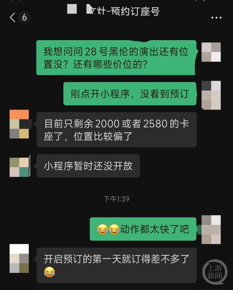 记者随后又以消费者名义,致电了6月28“黑伦”即将进行表演的连锁酒吧厦门文灶店,该店工作人员表示:“28号的演出没有门票,已经开始预订座位了。这次没开放线上小程序预订,而是直接线下预订。”