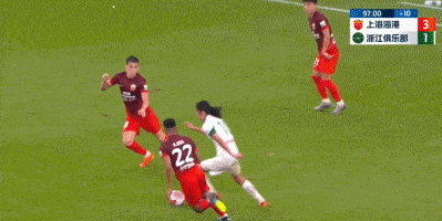 第97分钟,李提香带球突破被茹萨在身后放倒,茹萨吃到第二张黄牌离场。