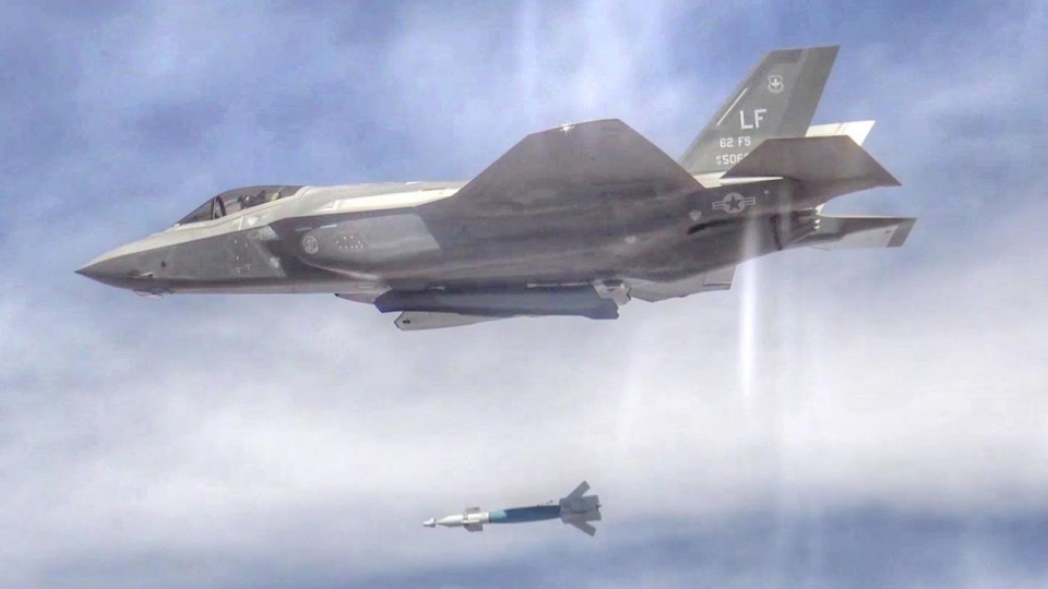 美军F-35B战机投掷制导弹药
