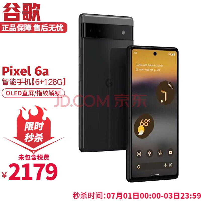 谷歌(Google)pixel 6a 智能手机6.1英寸谷歌自研处理器高级像素相机 双后置镜头 Pixel 6a 木炭黑-128GB