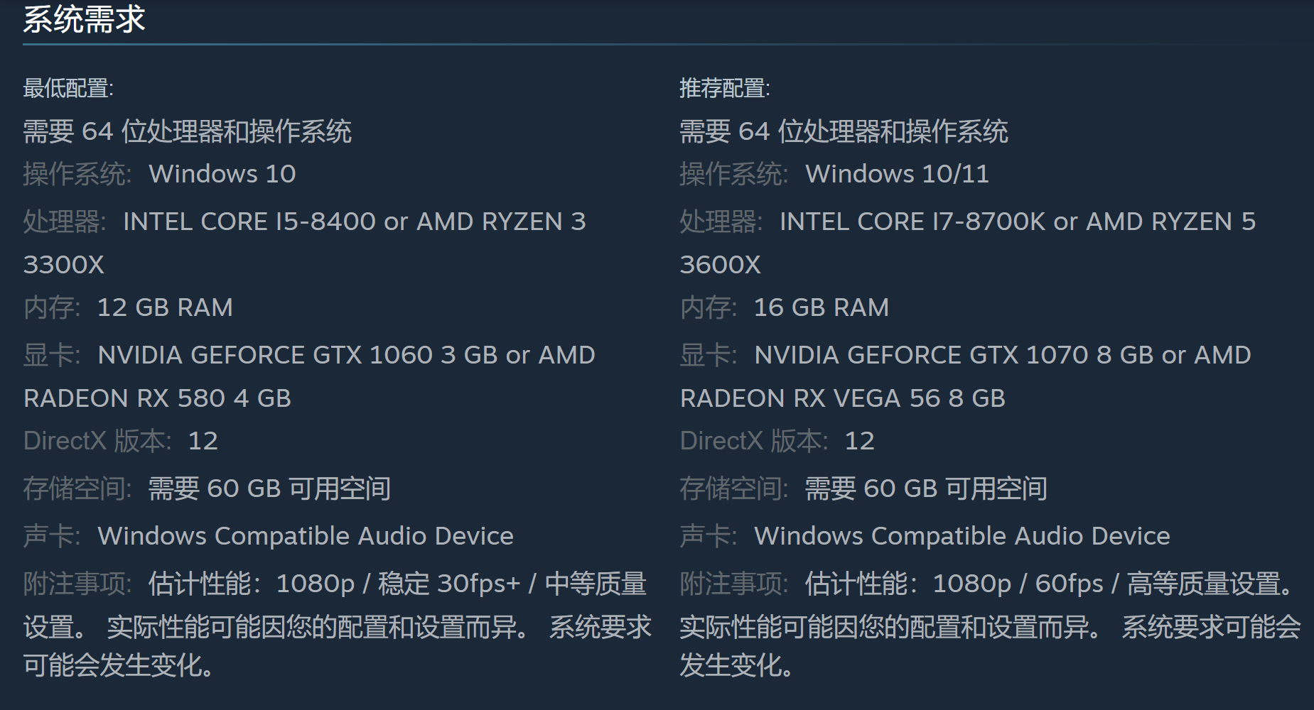 这次老头环DLC画风继续以高水准呈现。区域的设计融合了更多奇幻和神秘元素,色彩运用和光影效果更加丰富和细腻。DLC中的敌人设计同样具有视觉震撼。当然这款游戏主打暗黑奇幻,以深色调为主,不乏灰暗、冷峻的色彩,整体基调偏暗,游戏世界广阔深邃,充满未知挑战和神秘彩蛋,因此这款游戏更适合深度沉浸体验、乐于猎奇和冒险、享受高难度挑战的玩家。作为一款开放世界角色扮演游戏的DLC,其最低配置要求并不算苛刻,而且还是跟以往一样锁60帧。