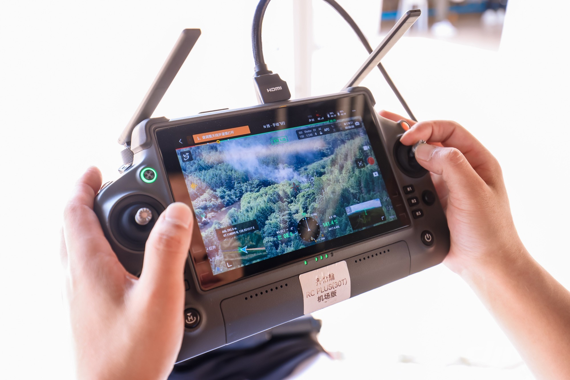 当林区出现烟点,大疆M350 RTK搭配禅思H30T相机模组的空中视角可以快速捕捉到火点的方位。H30T具备34倍光学变焦、最大400倍的变焦能力,因此可以在2公里之外发现火点,通过变焦来观看实时清晰的火点状况。同时可以通过H30T的红外模组来快速判断火点的情况,制定最有效的扑灭手段。通过大疆司空2平台,无人机飞手、一线扑灭人员和指挥中心实现空地协同,同步获得指令和实时信息,高效的扑灭火点。