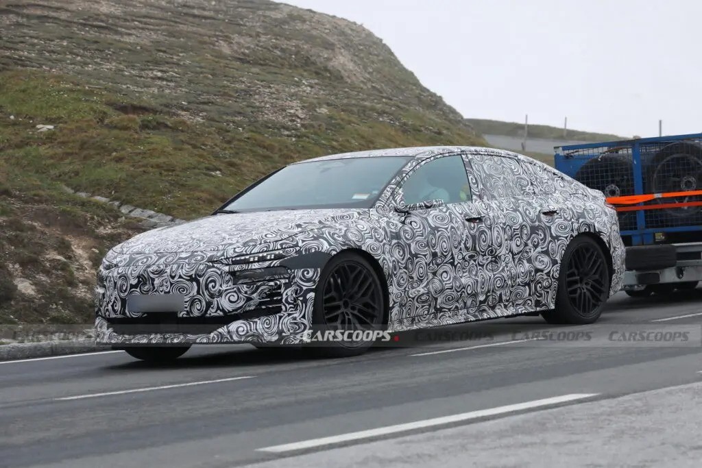 奥迪正在测试和评估其下一款高性能纯电动轿车RS 6 e-tron,最近拍摄到了它在欧洲严寒条件下的牵引能力测试。与之前我们所见的测试车不同,车身上的伪装似乎少了一些。