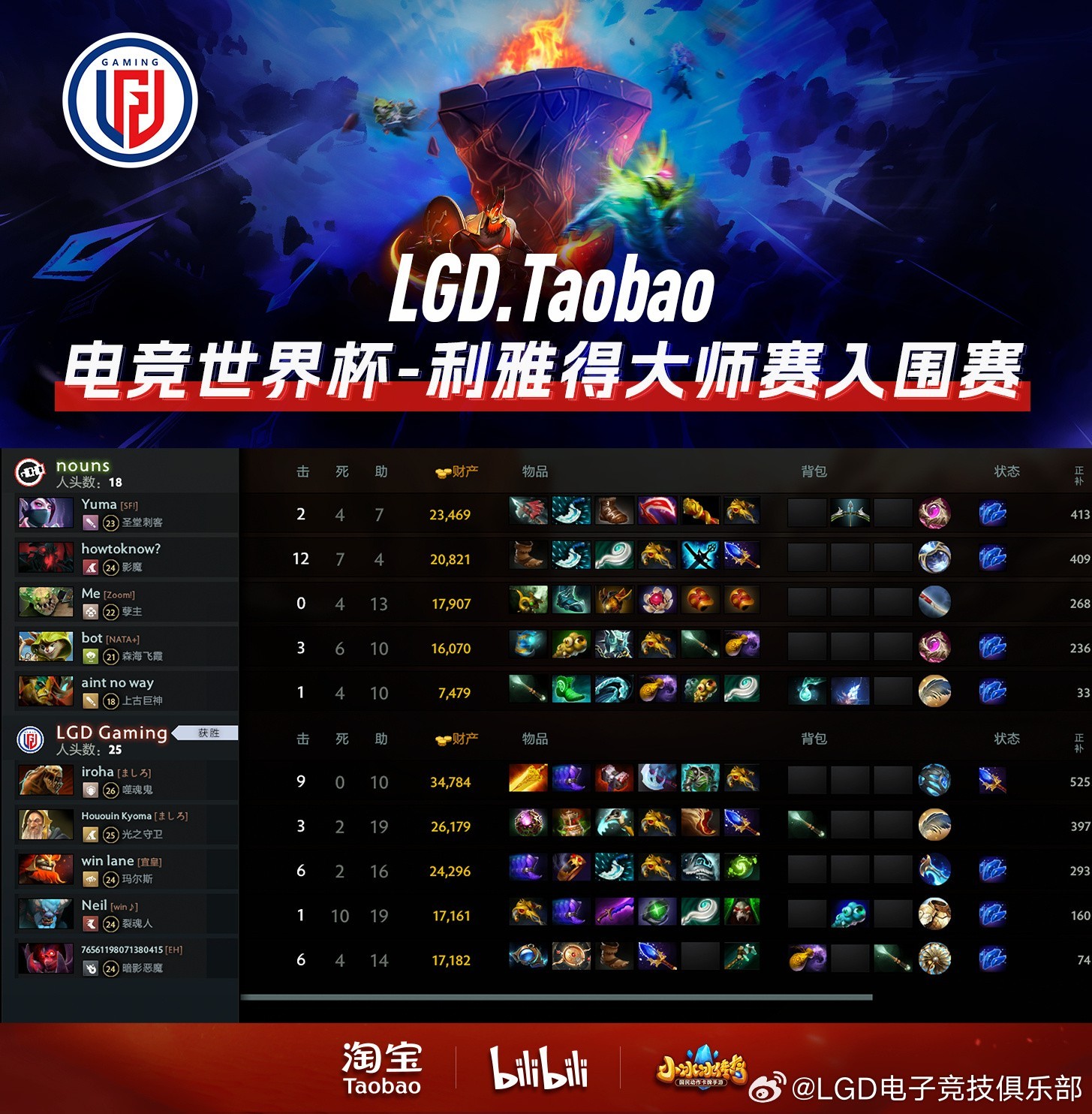 在首局比赛中,LGD以1:0获胜,人头比为25:18,比赛用时45分04秒。第二局LGD再次以2:0获胜,人头比为38:31,比赛用时1小时30分55秒。